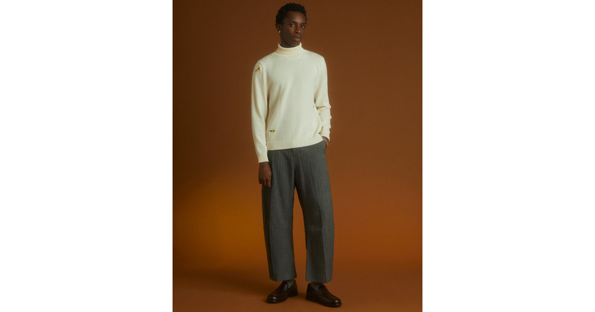 Made using a zero-waste, made-to-order process, each piece supports sustainable practices and slow fashion values. The clean, single-colour design in ecru is elevated by subtle embroidered bees; a delicate nod to nature and the craftsmanship behind every stitch.