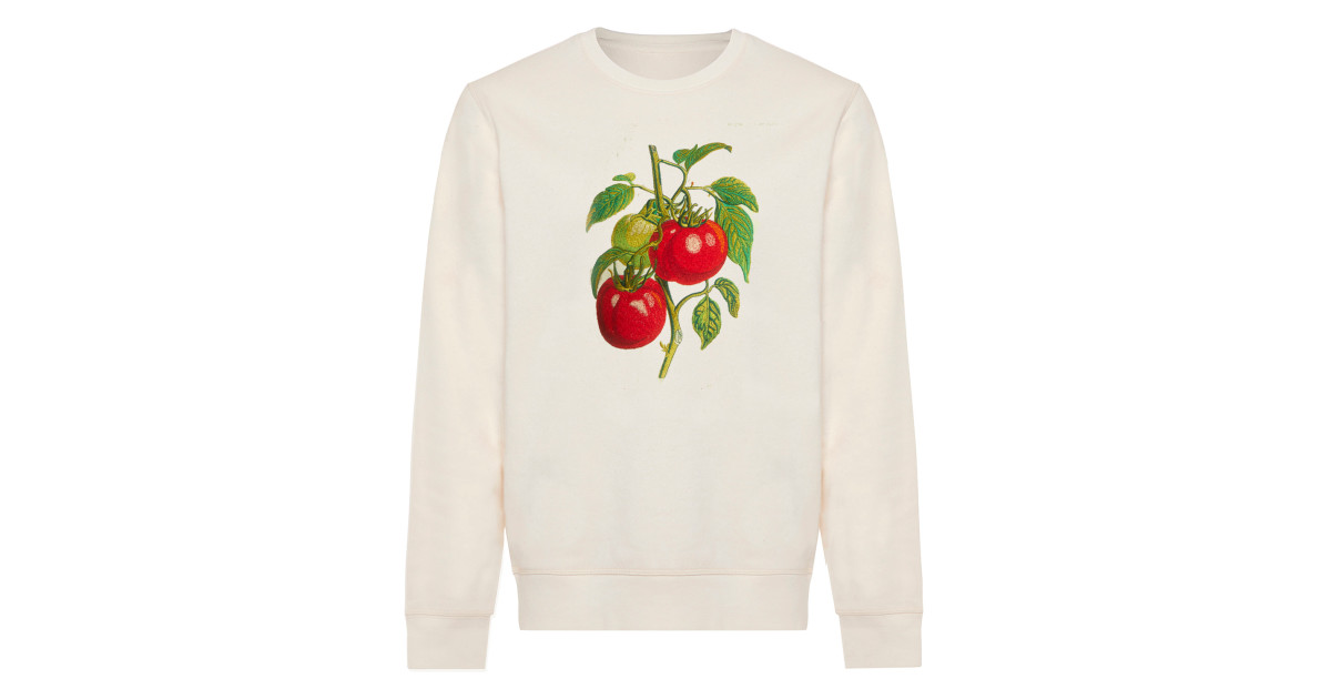 Add this sustainably made tomato-embroidered sweatshirt to your collection for the perfect blend of comfort, style, and conscious fashion.